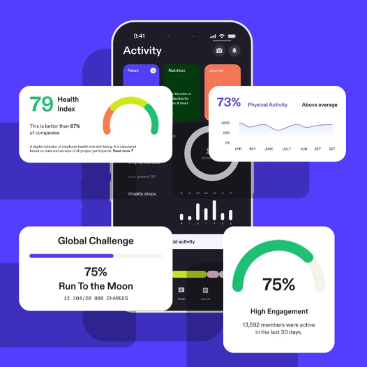 Boost engagement with tailored wellbeing activities, and get valuable ROI & data. incentivized well-being transforms culture, customizable to meet unique business objectives. At Stayf, we are pioneering a transformation in corporate well-being by merging cutting-edge technology with tailored wellness strategies, all in a single app. With over a decade of innovation, the Stayf app seamlessly integrates physical fitness and mental health solutions into everyday work life, ensuring that wellness is not just an initiative, it's integral to business success. We foster employee loyalty while creating a healthier, happier workforce. With Stayf, your employees don't just stay fit; they also develop a stronger bond with your company, leading to improved productivity and reduced turnover. From interactive wellness apps to comprehensive analytics and support, Stayf equips leaders with the tools to cultivate a thriving workplace.