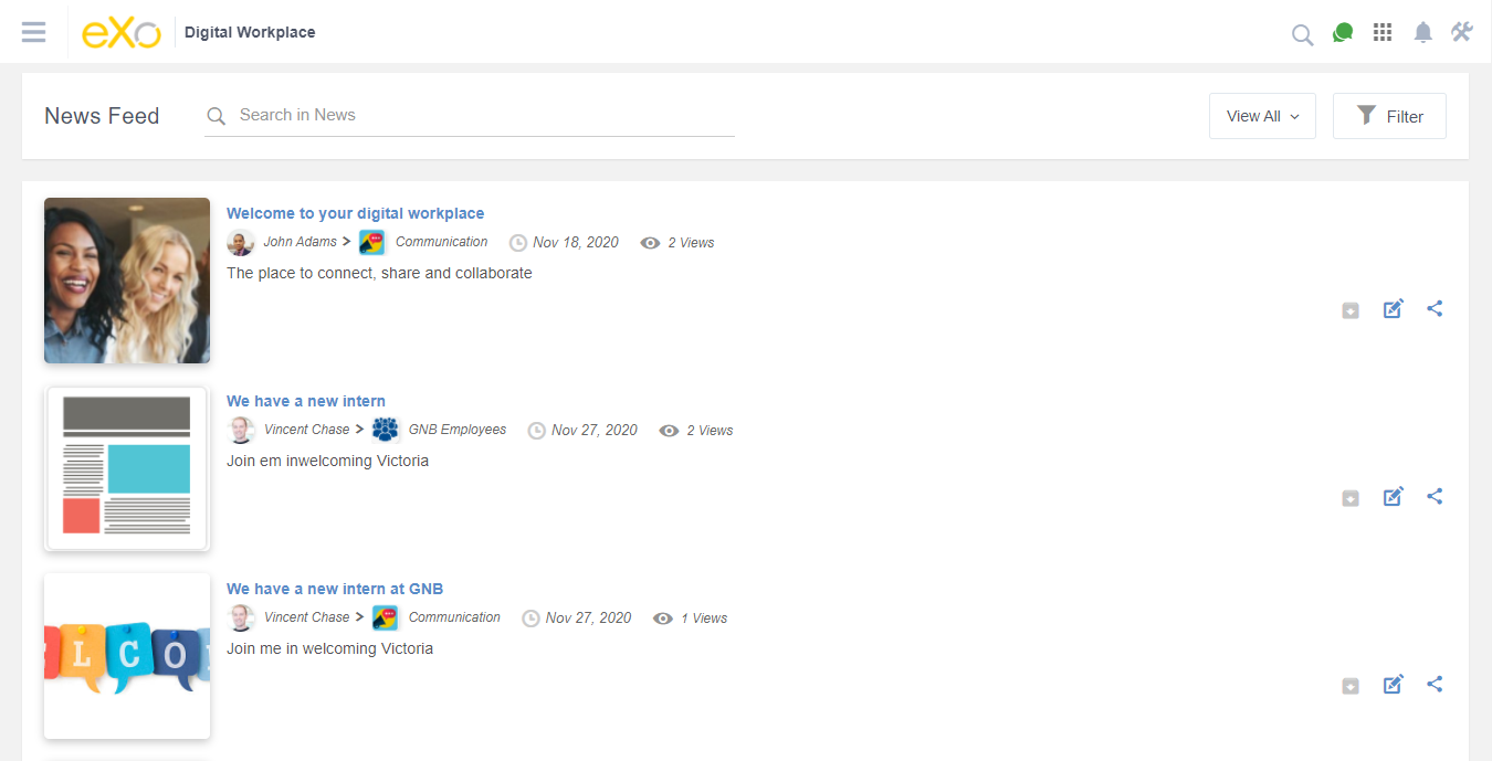 With eXo Platform, companies can connect, engage and reward their employees, customers, and partners with its social, engagement and gamification capabilities.