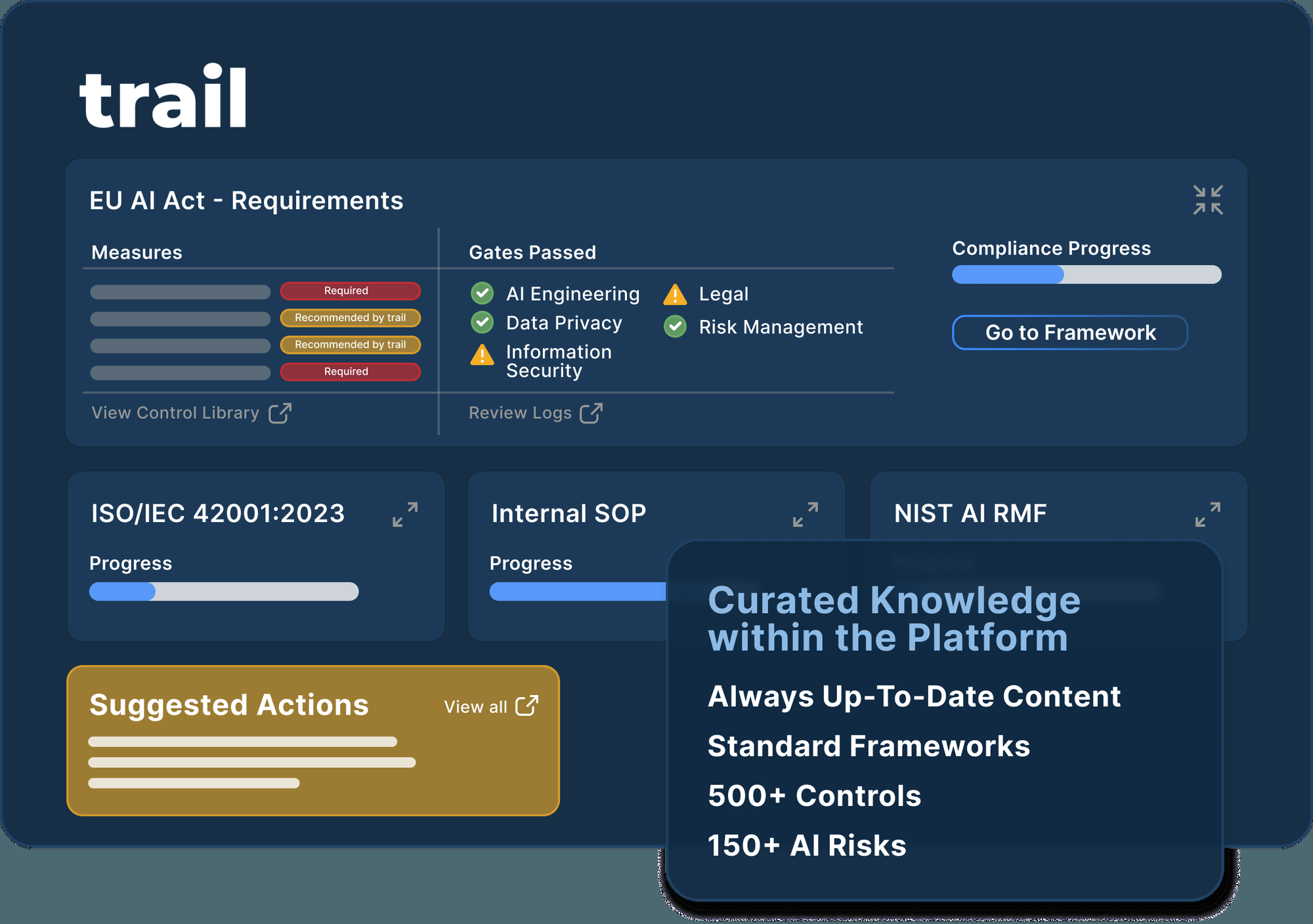 Trail ML is an AI governance copilot platform that helps organizations build trustworthy, compliant, and transparent AI systems by automating manual governance and documentation tasks. It centralizes AI registry, policy creation, risk management, automated documentation, development tracking, audit trails, and compliance workflows under one system, enabling teams to classify and manage all AI use cases, trace decisions from data and model to outcomes, and reduce the overhead of manual documentation and governance processes. It integrates governance frameworks and templates, supports creation of custom AI policies, and guides teams through identifying and mitigating risks, preparing for audits and standards like ISO 42001 and regulation such as the EU AI Act. Trail uses curated knowledge, risk libraries, and AI-powered automation to orchestrate governance tasks, translate regulatory requirements into actionable to-dos, and streamline collaboration between stakeholders.