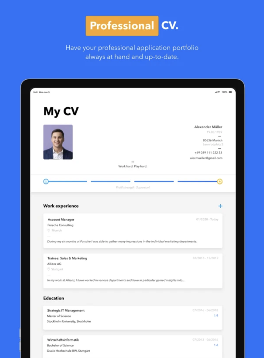 Apply for any job in the world via video and convince with personality. Whether applicant or company, thanks to Talentcube, the application process becomes a unique experience. Applicants simply present themselves in authentic videos and thus convey a personal impression. The complete résumé is created with just a few clicks and important documents and certificates can be easily added. The status of all applications can be viewed directly by applicants and is always up to date. The Talentcube team is always on hand to provide support. In addition to personal support, extensive articles are available in the Help Center. Recognize top talent right from the start and save yourself unnecessary job interviews.