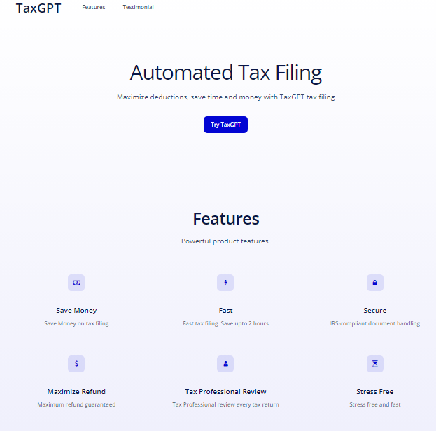 Tired of spending hours figuring out your taxes? We'll save you time here. Our cutting edge tax help service, aka TaxGPT, uses advanced artificial intelligence and a team of tax experts to give fast, accurate answers to any tax-related question here in our chatbot.