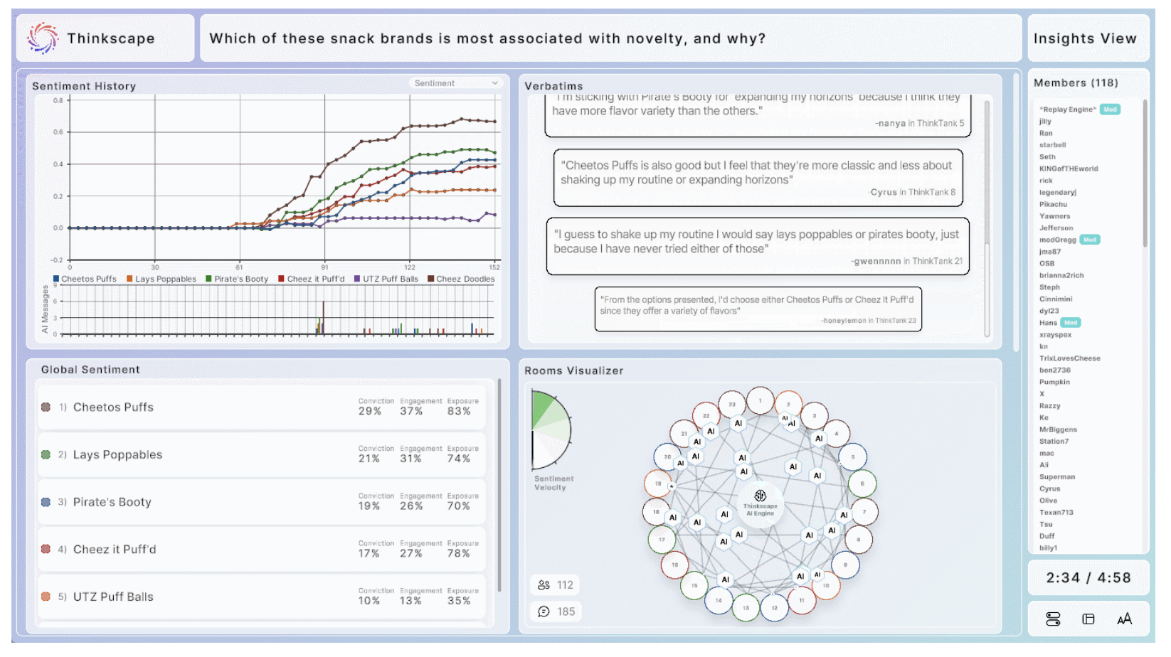 Enterprise teams, market researchers, and large group facilitators who need to conduct real-time collaborative deliberations, brainstorming, forecasting, and deep qualitative insights at scale