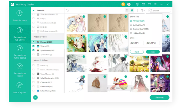 Directly recover deleted files from iOS devices, iCloud, and iTunes backup. Support 18+ data types like photos, videos, WhatsApp data, messages, etc. Retrieve data lost in various scenarios with only 3 steps. Highest data recovery rate to bring back more data than you expect. It doesn't matter how you lost the precious data, with top-notch data recovery technology, iSeeker comes as a reliable lifesaver to rescue you from any iOS data loss scenario. Extremely simple and fast. iSeeker iPhone data recovery tool encompasses all common types of data and get them back quickly. Moreover, it restores desired data to your PC or Mac without interfering with the existing data on your device. The iSeeker software is compatible with a wide range of iPhone, iPad, and iPod touch models. With an expert team, iSeeker continues to launch upgrades to support the latest iDevice model and iOS version.