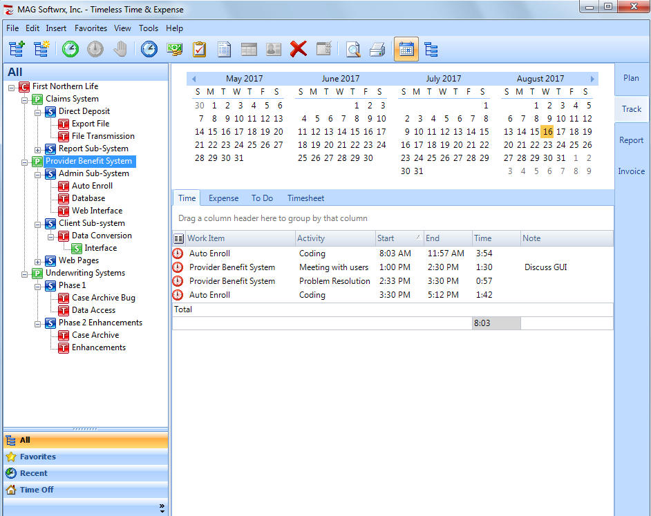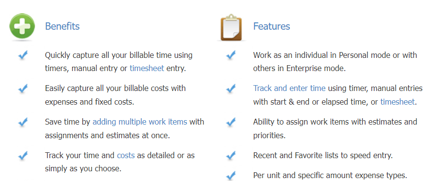 Timeless Time & Expense® is time tracking software that gives you the flexibility to track your time and expenses in a way that works for you. Rather than forcing you to track your time the way someone else thinks you should, Timeless Time & Expense allows you to model your time tracking and expense tracking the way you do business. The software is easy and quick to use, so you can start tracking your time immediately. For small to large organizations, project teams, consultants, professional services organizations (accountants, lawyers, graphic designers, engineers), and freelancers—any organization that wants to accurately track their time & expenses, and have accurate costing information. Work as an individual in Personal mode or with others in Enterprise mode. Track and enter time using timer, manual entries with start & end or elapsed time, or a timesheet. Ability to assign work items with estimates and priorities.