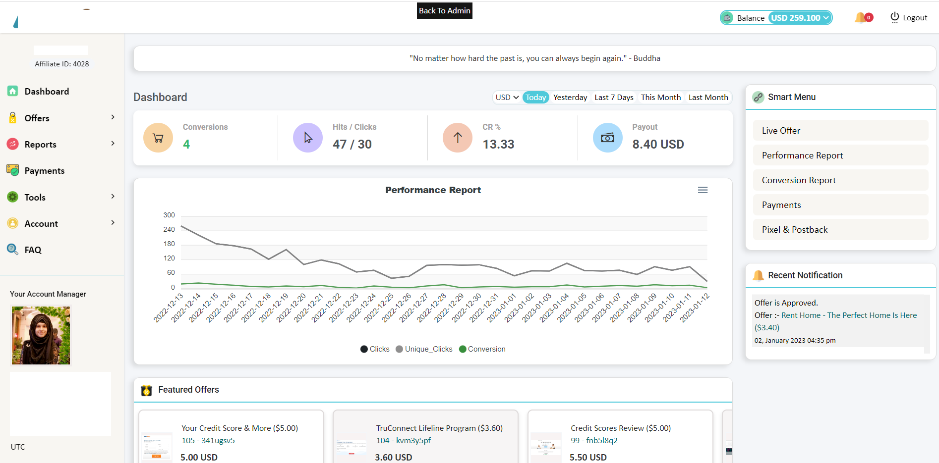 Trakaff offers advanced targeting options, offer management, publisher management, and reporting options. With real-time data, smart communication and management tools, and automated payouts, it helps you grow your network with ease and provides 24/7 support .