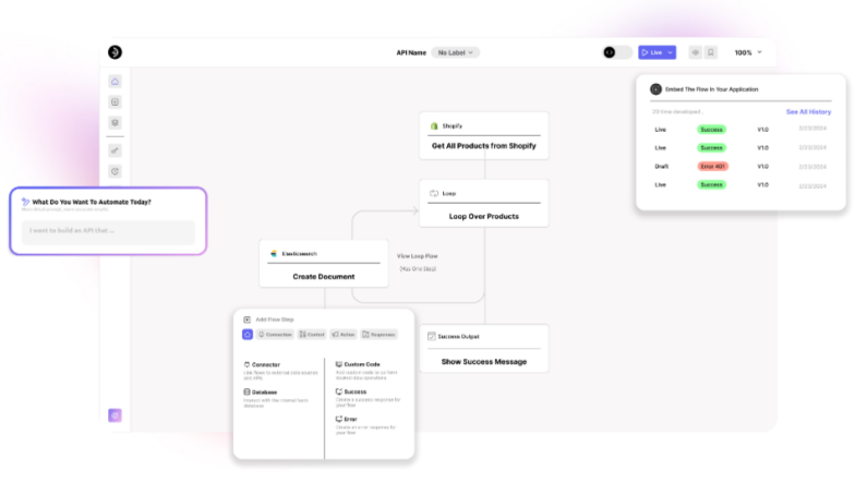 No-code, AI-powered orchestration platform for developers to connect any data flow and create hundreds of app integrations. Use an AI agent to create APIs from human prompts, adding new integrations without coding. Connect all application requirements with one Universal API. Build, extend, reuse, and unify integrations and authentication. Compose high-performance, enterprise-ready APIs in minutes, with built-in observability and compliance. Integrate your app in just a few clicks. Instant data orchestration across all connected systems. Focus on growth, not infrastructure; manage, monitor, and observe. Poor performance, limited insights, and scalability problems lead to inefficiencies and downtime. Overwhelming API integration backlogs and complex connectors slow innovation and productivity. Data inconsistencies across systems require hours to chase down. Develop and integrate connectors with any data source, regardless of its age or format.