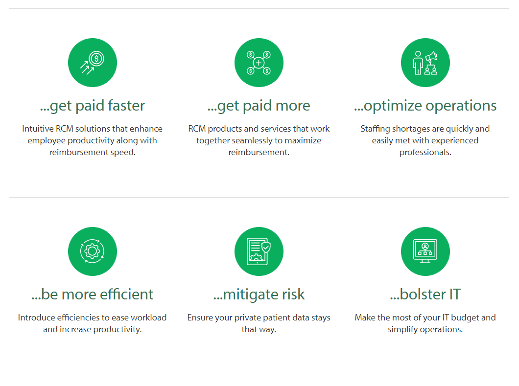 In the ever-changing world of healthcare, business and financial health is critical to the success of your healthcare organization. Get the people, products and processes you need for success that goes beyond simply getting paid. Revenue cycle management suite that helps businesses manage claims scrubbing, and review patients' eligibility through verifications. TruBridge is in the business of helping hospitals of all sizes get paid faster and get paid more through a combination of people, products and process optimization. Our arsenal of RCM offerings ranges from revenue cycle consulting, to an HFMA Peer Reviewed® product to complete business office outsourcing. TruBridge has been helping hospitals, physician clinics, and skilled nursing organizations become more efficient at serving their communities for years. Today, our trained experts stand ready to do the same for your organization, enabling you to overcome the unique revenue cycle challenges you face every day.