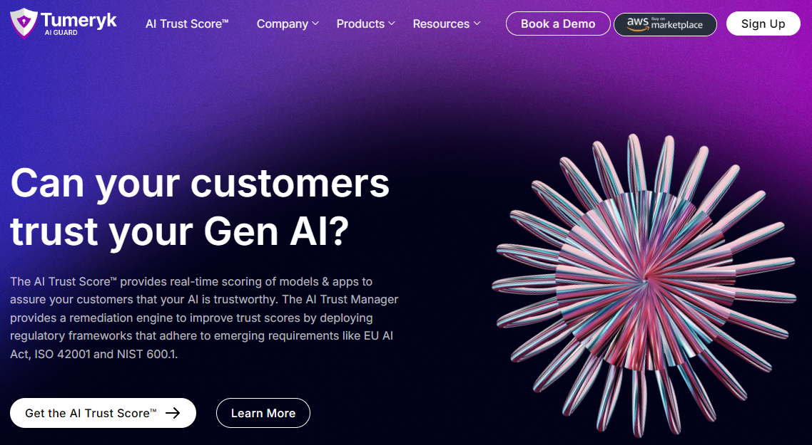 Tumeryk Inc. specializes in advanced generative AI security solutions, offering tools like the AI trust score for real-time monitoring, risk management, and compliance. Our platform empowers organizations to secure AI systems, ensuring reliable, trustworthy, and policy-aligned deployments. The AI Trust Score quantifies the risk of using generative AI systems, enabling compliance with regulations like the EU AI Act, ISO 42001, and NIST RMF 600.1. This score evaluates and scores the trustworthiness of generated prompt responses, accounting for risks including bias, jailbreak propensity, off-topic responses, toxicity, Personally Identifiable Information (PII) data leakage, and hallucinations. It can be integrated into business processes to help determine whether content should be accepted, flagged, or blocked, thus allowing organizations to mitigate risks associated with AI-generated content.