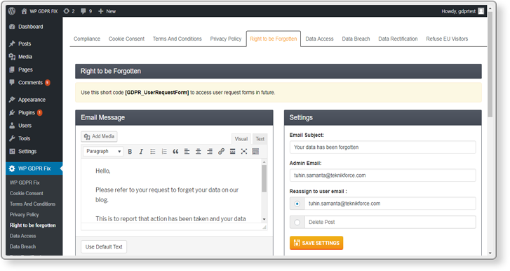 Right to data compliance lets you isolate and send any data you have on any user. Data breach notification compliance lets you send global notifications in case of a breach. Data modification compliance lets you modify any data you have on the user. WP GDPR Fix can really help you get compliant faster by filling in the bits that require the most amount of computation and coding work. It'll create sections for you that will be very expensive and time-consuming to re-create if you hired a team. Automatically informs your users about cookie use and gets their consent. Get T&C consent from any visitor to the site. Take people automatically to your T&C page. Generate a privacy policy automatically & redirect people on auto and get consent. Collect right to be forgotten requests and automatically notify website owners/admin. Collect data access requests and automatically inform admin. Sends data breach notification to all users as required by law.