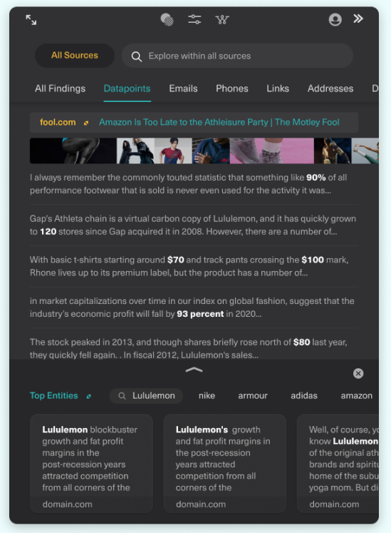 Whether you’re working on a last minute pitch or a critical due diligence, Waldo's AI research assistant has you covered with fast, reliable, data. Just describe your project and Waldo will instantly do the rest: creating a research plan, executing the searches, pulling out the insights you need, and presenting it all in an editable doc you can share with your team. Waldo cites and links to everything it finds, and comes equipped with a built-in fact checker. You can filter each search to trusted sources, and scan the text of every article to uncover hidden gems. Waldo elevates search to a standard that professionals can rely on. All datapoints Waldo discovers can be downloaded and exported for further analysis, and Waldo’s research can be easily shared with your team. Find the facts and trends you need for your deck with half the clicks. Find datapoints and information faster than ever with our lenses feature.