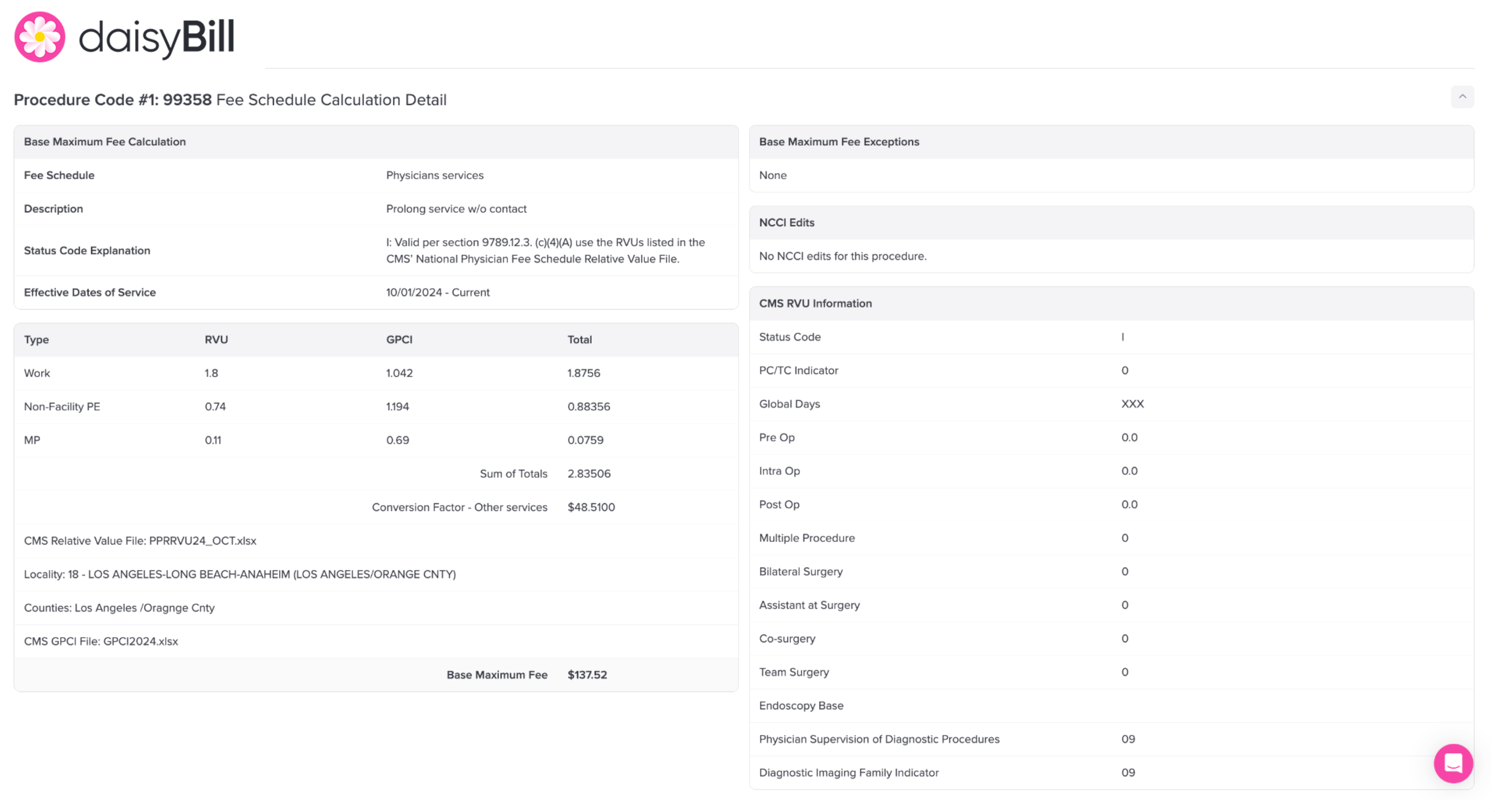 The platform offers a task-based system that tracks the entire lifecycle of each bill, prompting administrative staff through the process of managing requests for authorization, bill submissions, payments, and payment appeals. The platform also includes daisyWizard, which calculates exact reimbursements per the applicable state fee schedules.