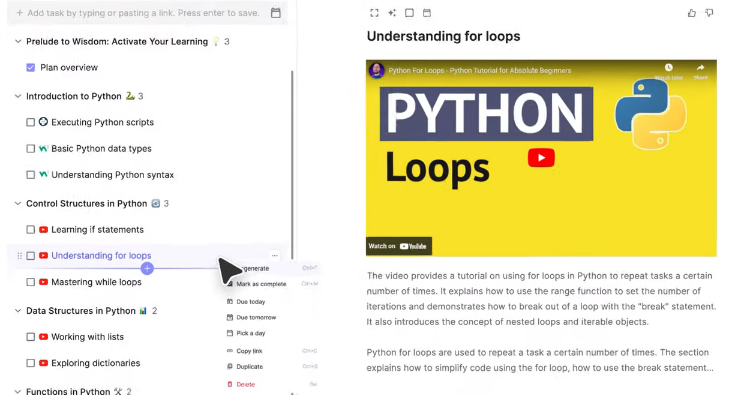 Say goodbye to one-size-fits-all education; with WisdomPlan, your personalized learning journey starts here. With just a few inputs, WisdomPlan quickly creates a tailored learning plan for you within minutes. Say goodbye to manual to-do list creation and resource searching. Intelligent planning, scheduling, and sequencing. Centralize courses, docs, and webpages in one plan. Adapt your learning tasks as you go. Break tasks into steps, add due dates, set reminders, and track insights to keep your learning plans on track. Take notes when learning in one convenient place. Calender and email reminders for consistent learning. Analytics dashboard to help you track progress. Connect with fellow learners in our community. Reflect on your learning, share your plans, and receive feedback. Adopt community plans to avoid reinventing the wheel. Sharing your plans with classmates and friends. Access to 100+ learning plans from the community.