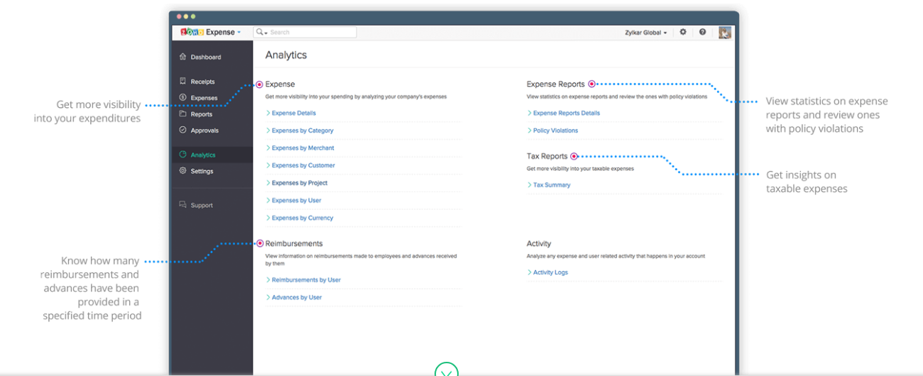 Zoho Expense is a simple and affordable software that makes expense reporting and monitoring seamless. Created by Zoho, a multinational business software company, Zoho Expense enables users to automate expense recording, streamline the approval process, control expenditures, and gain spend visibility and control. Key features include expense analytics, credit and debit card transaction imports, auto scan receipts, custom report fields, multi-currency support, among others.