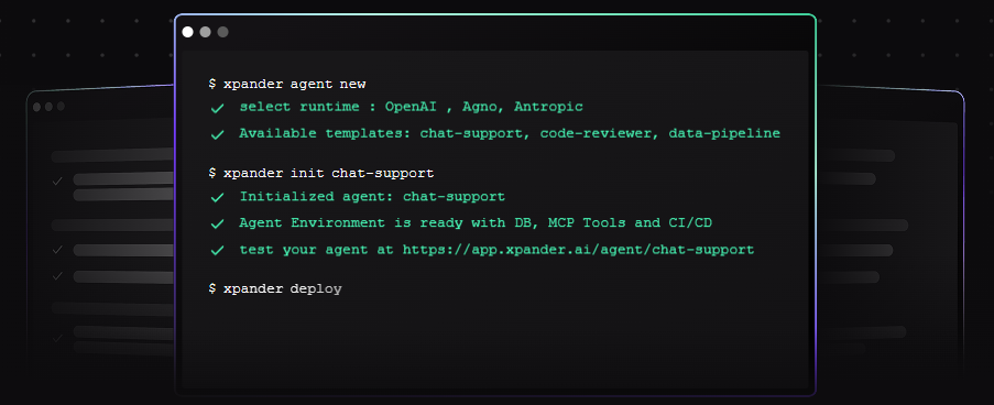 xpander.ai is a backend-as-a-service platform tailored for production-grade AI agents, offering developers a robust infrastructure that handles memory, tools, connectors, multi-agent workflows, triggering, state management, observability, and CI/CD pipelines without requiring infrastructure setup. Its visual AI agent workbench enables users to design, configure, simulate, test, and deploy agents interactively, complete with support for multi-agent collaboration, tool integrations, role-based access, and runtime governance. Developers can connect agents to SaaS or enterprise systems via AI-ready connectors, attach tool-compatible workflows, and monitor agent behavior with built-in observability and lifecycle tools. It supports deployment on hosted cloud infrastructure or within private VPCs, ensuring both agility and secure enterprise integration, and accelerates agent development from idea to production.