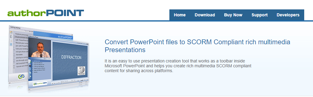 It is an easy to use presentation creation tool that works as a toolbar inside Microsoft PowerPoint and helps you create rich multimedia SCORM compliant content for sharing across platforms. Batch conversion where you can convert multiple PPT to SWF files. Personalized output with presenter's image and logo. Customized output, which is possible by selecting the layout color and template.