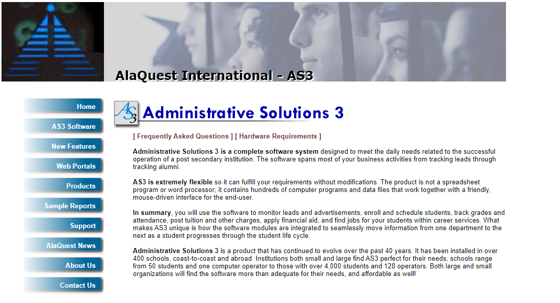 You don't install hardware and software, you don't manage backups, nothing like that. We manage all of that on our end. Simply connect via the Internet to your school site on QuickSchools.com. Log-in, and you're up and running.
