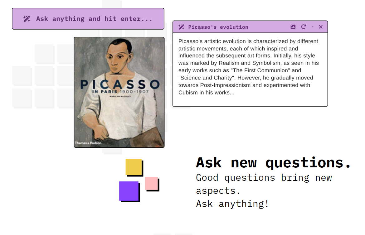 Explore anything and work with knowledge in a different way. Every idea sparks a new one, go for it! Every idea sparks a new one. Go for it. Organize your board with notes and add relevant images quickly. Control your content while presenting. Show & tell with ease. Start with a topic and let Albus quickly shape your idea board. Explore, mix, edit, and present the content.