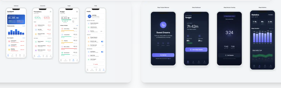 The AI doesn't just create random designs, it understands your app category (fitness, e-commerce, social, etc.), applies appropriate design styles, and follows platform conventions. Request an iOS shopping app with a minimal aesthetic, and you'll get Human Interface Guidelines-compliant screens with proper tab bars, navigation, and system fonts.