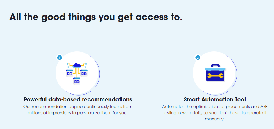 We help publishers across the globe generate more revenue by connecting them to multiple premium DSPs & deploying cutting-edge ad optimizations with dedicated hands-on technical account management support. Boost ad revenue effortlessly with our placement automation tool. Reduce manual optimization efforts and optimize placements based on data-driven recommendations. Unlock the power of automation for greater profitability. Scale your user base with ROI-positive campaigns that connect you to the right users. Our experts optimize your Google Ads & Facebook Ads so that you achieve the desired results with a positive ROI.