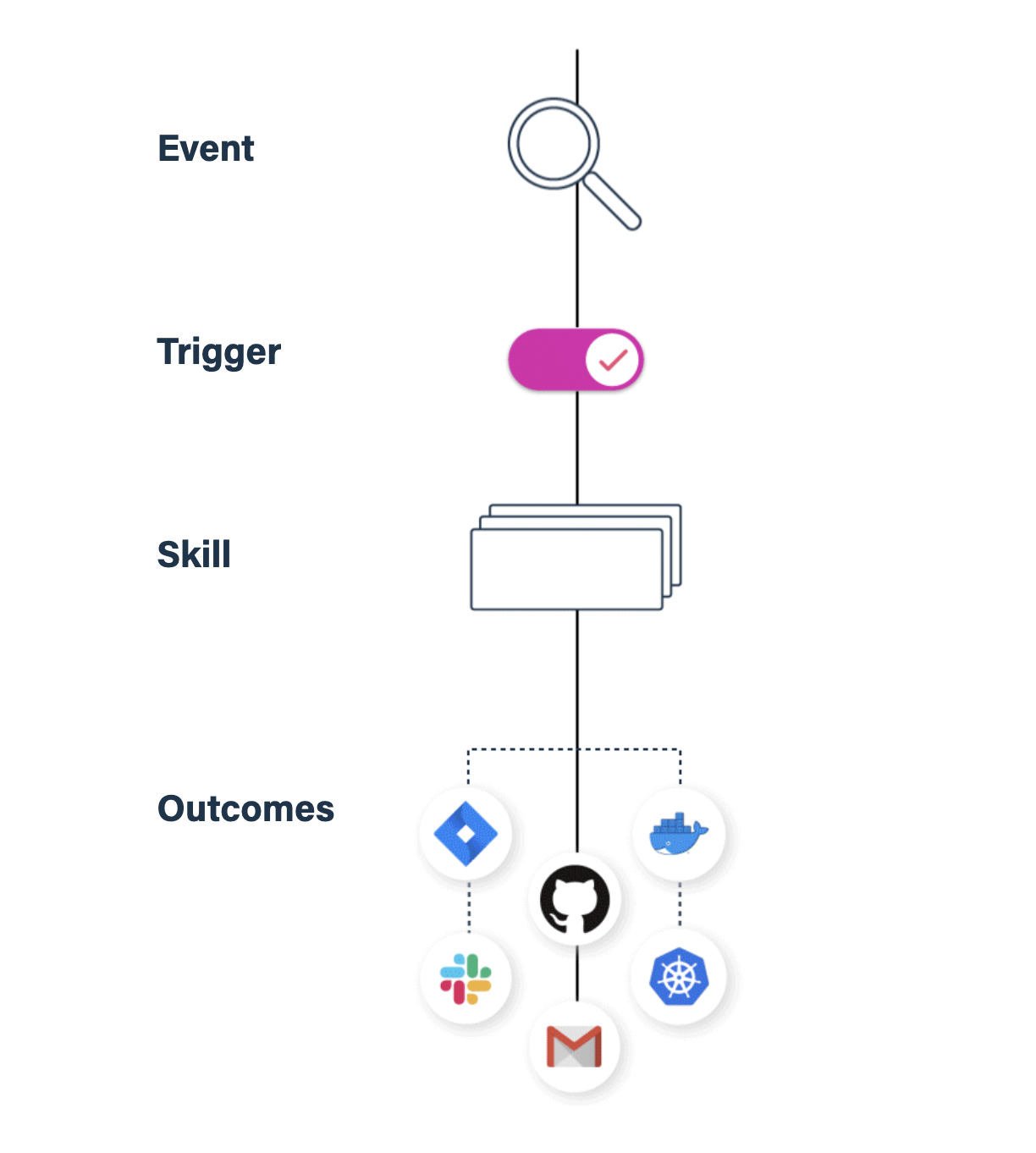 Introducing our new automation platform, delivering pre-built automations called skills. Automate all your repetitive and nuanced tasks like replacing strings in projects, updating npm dependencies, running a code quality scan, or build your own skill to solve your unique requirements. Teams using Atomist have the flexibility to apply pre-built automations, called skills, across all their repositories, development activities, and operations events. The execution of a skill is triggered by an event-based action important to your team, like a commit, build, deployment, or the creation of an issue.