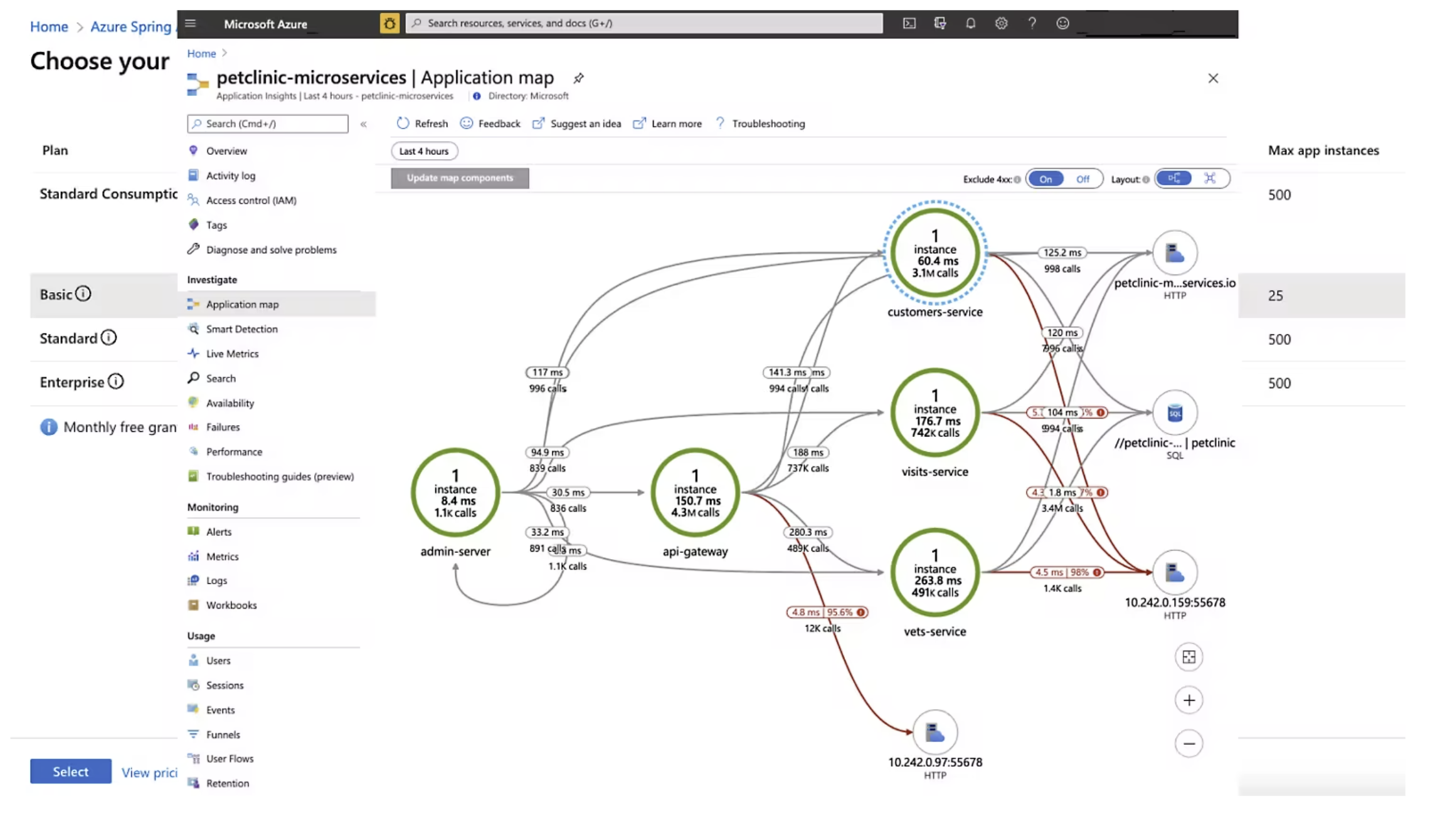 Azure Spring Apps is a fully managed service that helps Spring developers focus on code, not on infrastructure. Deploy any type of Spring app—including web apps, microservices, event-driven, serverless, and batch—without the need for Kubernetes. Take advantage of the Azure ecosystem while using your existing investments. Gain deep insights into application dependencies and operational telemetry using Azure monitor. Aggregate metrics for a topological view of how different services interact and see average performance and error rates. Easily identify the root cause of reliability issues and performance bottlenecks. Focus on what matters—your apps, business logic, and delivering value to your users. Deploy any type of Spring or Polyglot apps, either from source code or artifacts, with support for container creation and maintenance.