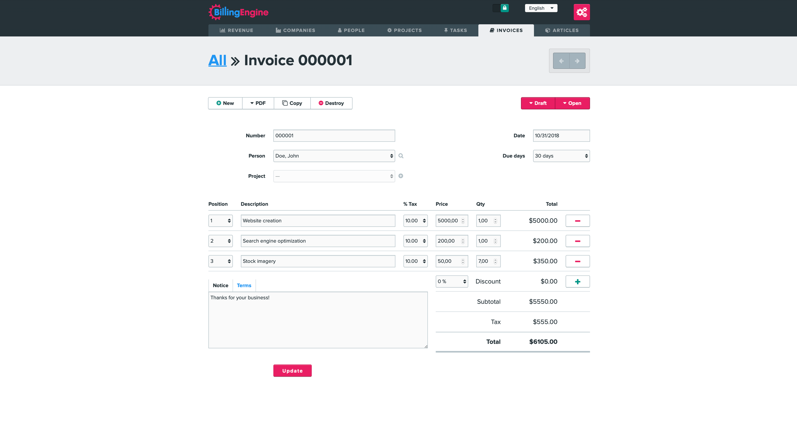 BillingEngine is a hassle-free invoicing program for entrepreneurs who don't want to get a degree in accounting just to run their business. Our easy user interface lets users complete their tasks in fewer clicks than any other accounting platform out there so you can focus on what matters, your customers.