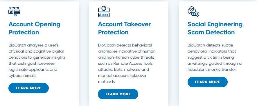 BioCatch delivers advanced behavioral insights to provide global organizations with actionable intelligence so you can create a secure customer journey. BioCatch analyzes a user's physical and cognitive digital behaviors to generate insights that distinguish between legitimate applicants and cybercriminals. BioCatch detects behavioral anomalies indicative of human and non-human cyberthreats such as Remote Access Tools attacks, Bots, malware and manual account takeover methods. BioCatch detects subtle behavioral indicators that suggest a victim is being unwittingly guided through a fraudulent money transfer. BioCatch's Al-driven behavioral biometrics technology significantly reduces online fraud and enables online identity verification, without compromising the user experience. BioCatch's patented solution is designed to protect identities online while providing web and mobile users with a frictionless experience.
