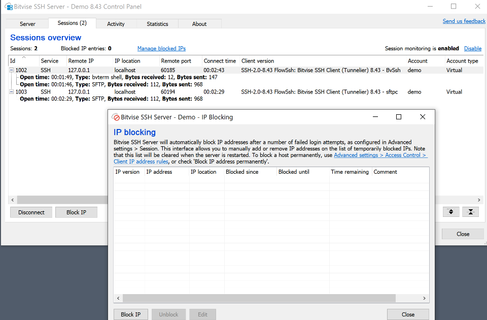 Multi-protocol secure file transfer. Remote access and administration. Available for Windows, Linux, and Mac. Secure file transfer server to protect data in transit. Multi-protocol support: SSH2, SFTP, FTPS, and HTTPS. Fine-grained access control for users and groups. Secure remote access and administration with SSH2. Set up and configure easily; runs right out of the box. Integrates with Windows AD and LDAP. Enterprise-level reliability and robustness, "set it and forget it". Compatible with clients using open standards for SSH2, SFTP, FTPS, or HTTPS. Multi-platform support for Windows, Linux, and Mac. Runs on physical servers, virtual machines, and cloud-based servers. Cost effective, connection based licensing. Dedicated and customer-oriented, high level of expertise, and quick response time. Technical support begins during evaluation. Grant access to VShell services by authorized users or groups. On an individual or group basis, allow or deny access to VShell services.