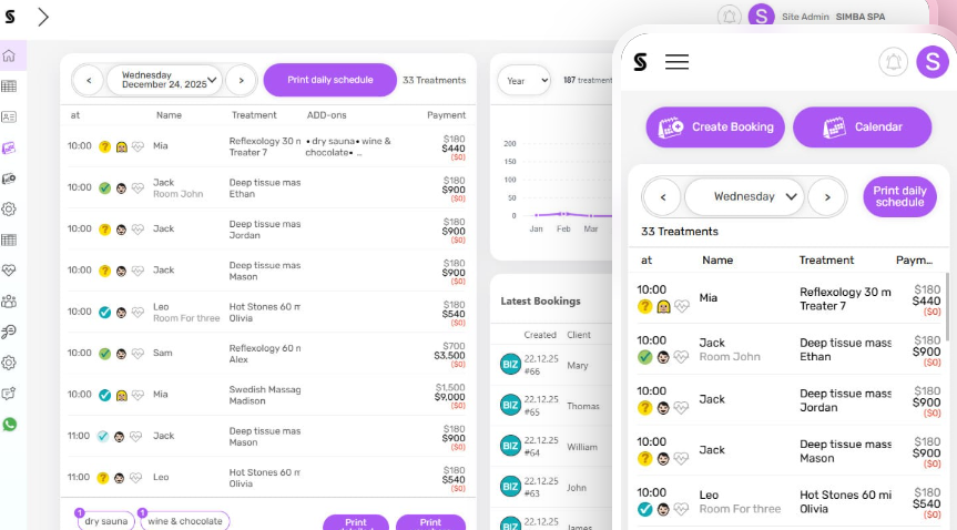 Spa, wellness, and massage center owners and managers searching for a tool to run bookings, scheduling, staff, clients, payments, and reporting smoothly in one place