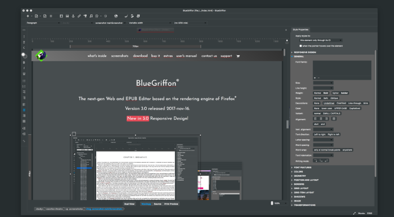 The next-gen Web and EPUB Editor based on the rendering engine of Firefox. BlueGriffon® has a long list of famous ancestors and proudly inherits from all of them: Netscape®, Mozilla® Composer and Nvu. It is powered by Gecko, the same rendering engine you can find at the heart of Firefox®, and is filled with tons of powerful features. BlueGriffon® is used by millions of users around the world, including Universities, Governments and even the European Parliament. It is officially recommended by the French Government as the Web Authoring Tool for the French Administration in its effort to rely on and promote Free Software. BlueGriffon® is used by millions of users around the world, including Universities, Governments and even the European Parliament. It is officially recommended by the French Government as the Web Authoring Tool for the French Administration in its effort to rely on and promote Free Software.