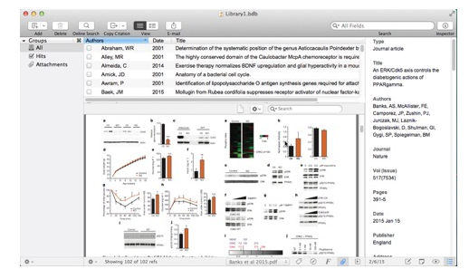 Bookends is a 64-bit full-featured and cost-effective bibliography, reference, and information management system for students and professionals. Bookends requires Mac macOS 10.13 or later (including Catalina, macOS 10.15). Bookends is unicode-savvy, so you can mix Roman (English, French, German, etc.) and non-Roman (Japanese, Greek, Hebrew, etc.) characters. A highly configurable, interactive, and editable interface lets you work with reference information the way you want. View Groups or Term Lists (Authors, Keywords, etc.) on the left. In the concise reference view on the right, arrange fields in any order, show just the ones that you find useful, and label them as you like. Editing or entering information is a single click away. Show attachments (pdfs, text files, images, etc.), or use the reference’s URL to show live web pages of its contents. Notecards let you enter, edit, and rearrange your thoughts, and make citing pages in footnotes a snap.