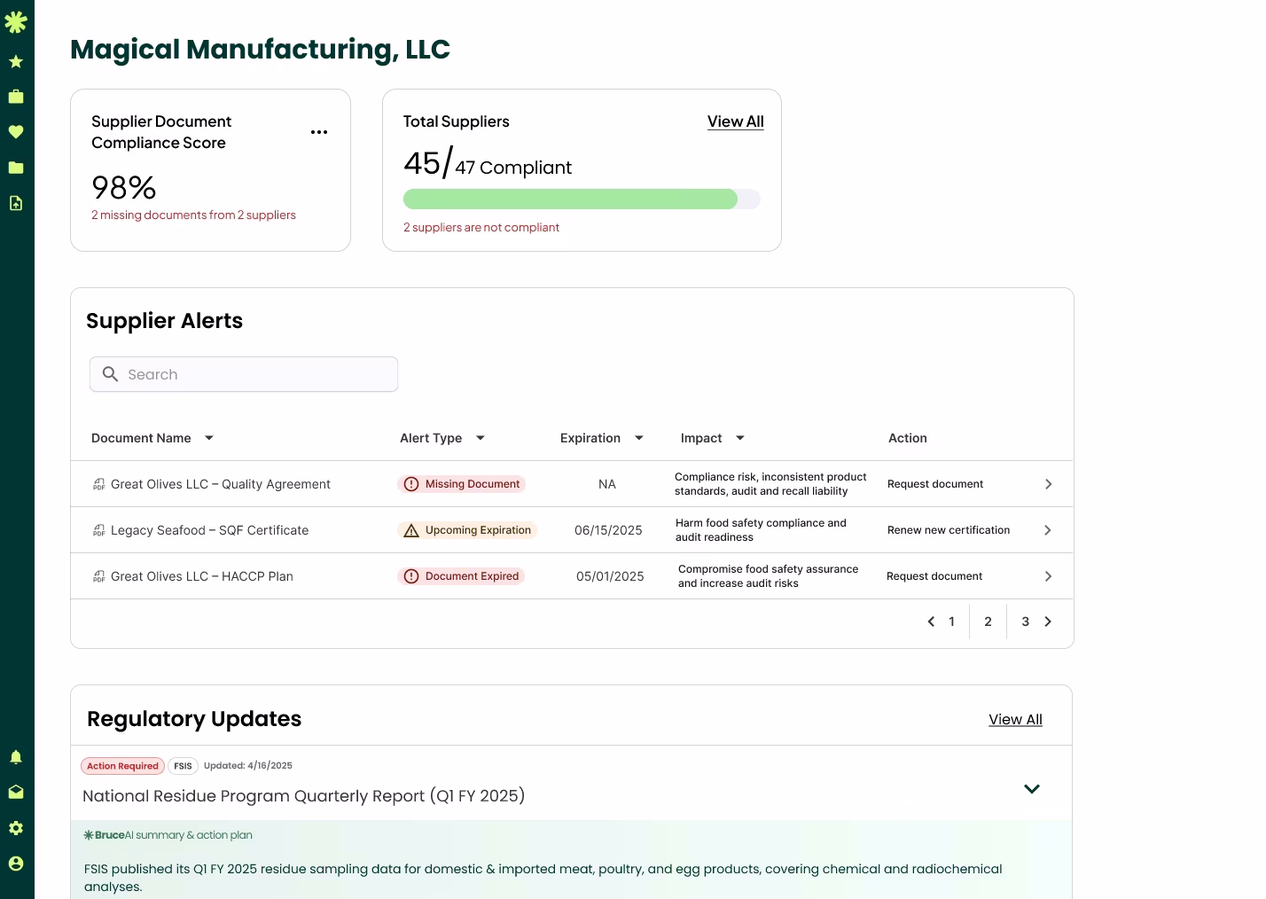 Allera is an all-in-one digital food safety and quality management software that helps food companies replace paper binders and spreadsheets with searchable, audit-ready records, automated workflows, and real-time analytics to streamline compliance with HACCP, SQF, FSMA, and other regulatory standards. It lets teams digitize FSQA forms and checklists with smart, timestamped digital entries accessible from any device, automate supplier management with dynamic forms and expiration tracking, and centralize document control so SOPs and quality records are accurate, version-controlled, and audit-ready. With features for document control, supplier compliance, trend analytics, and reporting, Allera improves operational visibility, reduces risk, and cuts time spent on quality assurance paperwork, helping companies manage quality and safety across facilities while ensuring consistent processes. Its user-friendly design supports real-time oversight of quality metrics faster.