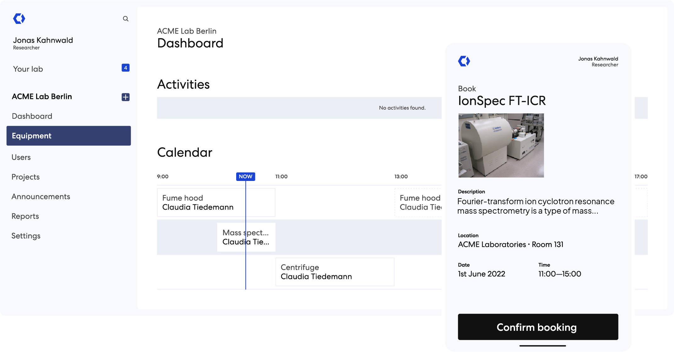 Pros: It's easy to book things, view other bookings, keep training records and create reports of equipment use.