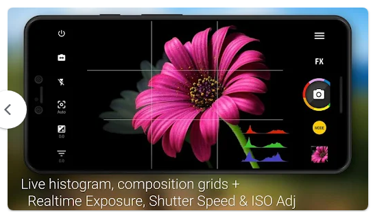 Camera FV-5 is a professional camera application for enthusiasts, power users, professionals, and everyone in-between. Features a modern and fast camera experience that puts DSLR-like manual camera controls at your fingertips. Supports switching to any rear and front cameras, with manual controls for every camera. Fast and simultaneous capture in JPEG and DNG formats, for complete flexibility in post-processing. Many options like shutter, zoom, exposure, white balance or camera switching are assignable to the volume keys. Complete control over the exposure, metering, white balance, focus and sensitivity. Disabled by default for privacy reasons, will embed the location of each photo by using GPS or celular network location systems. If enabled, the last taken picture will be displayed for quick review.