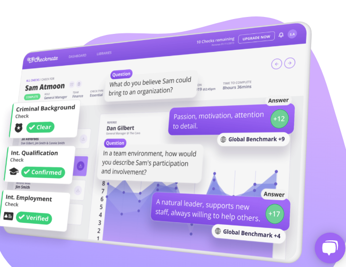Checkmate is an easy to use online reference checking and background screening tool. Join hundreds of organizations across the globe that are transforming the way they hire with Checkmate. There's no easier way to manage candidate reference checking and pre-employment screening. Automate industry-leading best-practice. Pre-employment checks shouldn't be arduous. It typically takes a candidate only minutes to complete everything they need to. Respect a referee's time by creating a dynamic questionnaire that follows a natural conversation. Create follow-up questions and build a narrative, while saving everyone's time. Online identity verification and digital signing platform. Upload ID directly from your phone. Monitor and manage recruitment and onboarding compliance all from your dashboard. Encourage passive candidates to your career portal or offer your services to a potential client.
