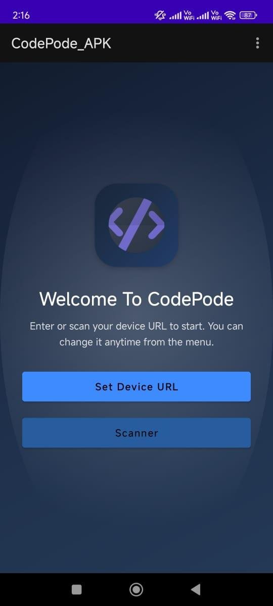 CodePode App is the companion Android application for the CodePod DIY home server and dev kit. It provides an easy and secure way to access your CodePod device directly from your phone without relying on a browser each time. With a clean interface and lightweight design, the app lets you log in, manage, and update your projects effortlessly. CodePode is built to help students, developers, and small businesses host, test, and manage their apps or websites locally—reducing hosting costs while improving accessibility. Whether you are deploying projects, monitoring your server, or testing updates, the CodePode App gives you a seamless experience at your fingertips.