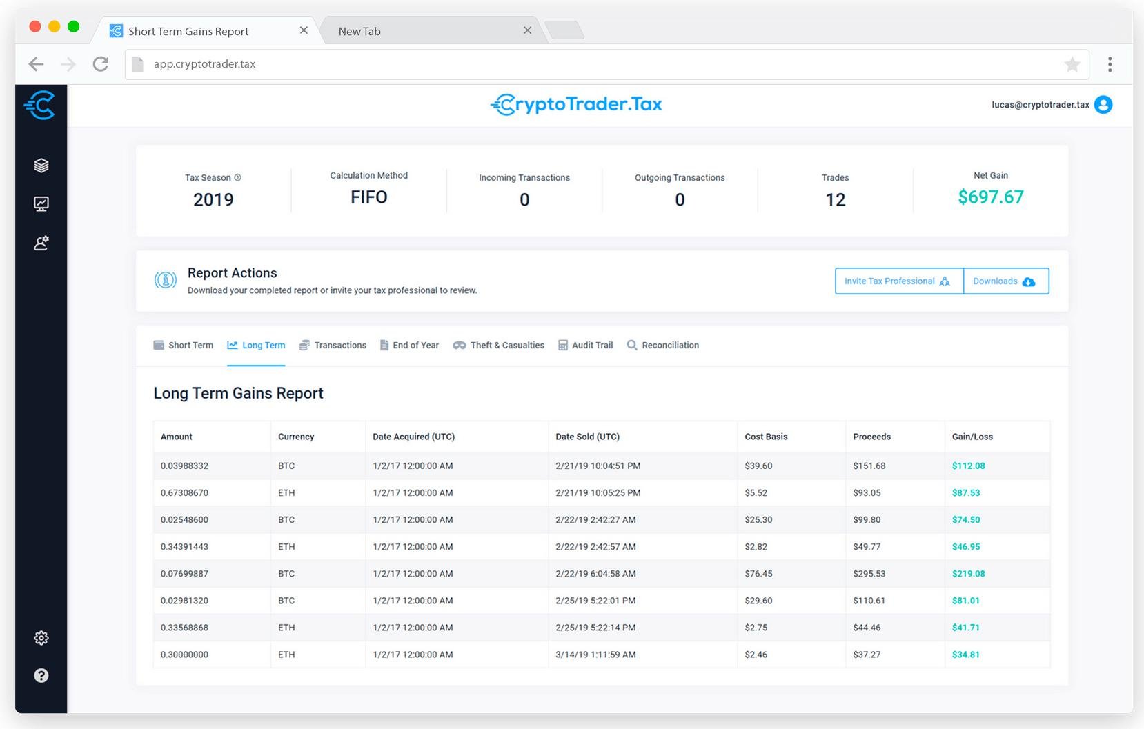 CoinLedger (formerly CryptoTrader.Tax) takes away the pain of preparing your bitcoin and crypto taxes. Simply connect your exchanges, import trades, and download your tax report in minutes. Import your trades using the API import tool or upload your trade history file. CoinLedger integrates with all major exchanges to make this process quick and painless. Add your sources of cryptocurrency income from the tax year. CoinLedger calculates your gains from mining, staking, gifts, airdrops, and forks. CoinLedger calculates your tax liability using the same methods tax professionals use. Rest assured that you are paying the correct amount and minimizing your crypto tax liability. Download your completed IRS forms to file yourself, send to your accountant, or import into software like TurboTax and TaxAct. Partnered with the largest tax preparation platform to make it easy for you to E-File your crypto gains and losses with your full tax return.