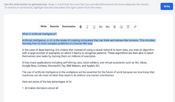 Turn Ideas into Content at Scale. Use Contentyze to automatically create marketing content from raw data using Artificial Intelligence. Need 10,000 product descriptions for your ecommerce platform? Import your spreadsheet and build a template to generate all texts at once. Writing a long blogpost and you're stuck? Input a headline to get a longer text or rewrite a text from other blog by simply providing a link. Behind on your social media posts schedule? Generate short summaries from any longer text and post them directly to social media. Take your business to the next level with our automation tools for writing, monitoring and distributing content across multiple platforms. Create templates for your narratives. Build your own templates for stories or let our AI do that for you. With templates ready you'll be able to generate stories just by providing raw data. Easy to configure. Based on your past stories or totally unique.