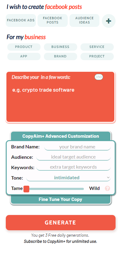 CopyAim uses GPT-3 Language Model from OpenAI to create all the copy and ideas that are almost always ready-to-use. CopyAim is always trying to generate original copy based on your input criteria. With that said, we strongly suggest you run your result copy through plagiarism checkers of your choice.
