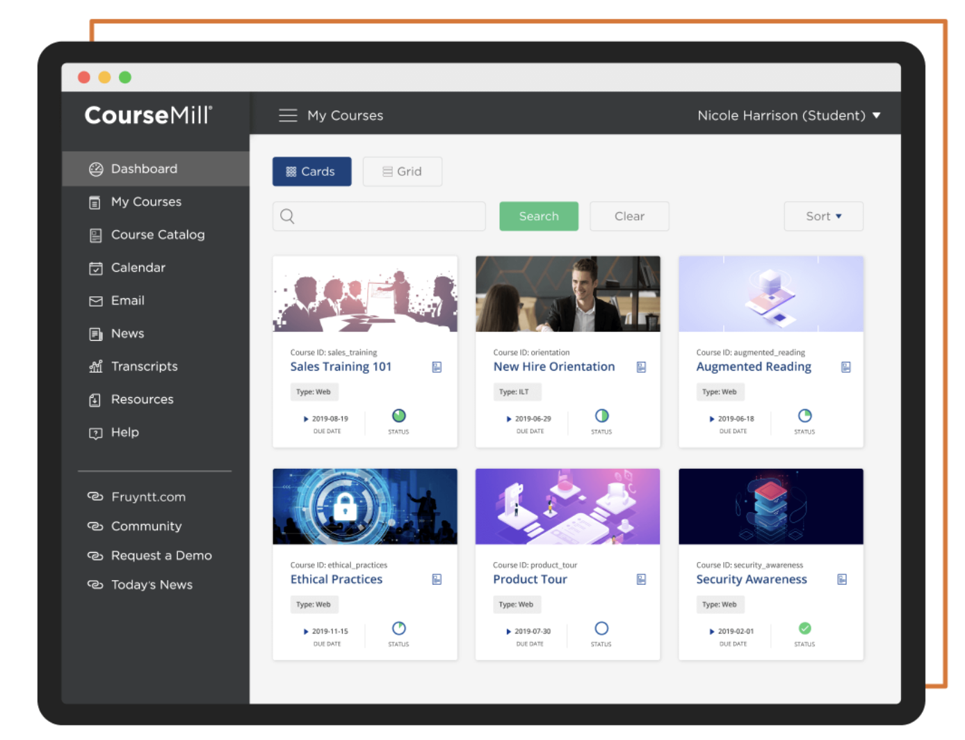 The Workhorse That Runs Your Entire L&D Operation. The learner dashboard is self-explanatory. Simply click on a course card and go! A view of upcoming training events and deadlines keeps learners progressing and on schedule. Automated notifications will keep learners informed of upcoming events, due dates, and course progress. From just-in-time training to corporate policies, learners can take courses on phones, tablets, and everywhere they go. Community features can be enabled with each course to facilitate interactive discussions. CourseMill helps employees succeed by supporting more effective & convenient training strategies. Large organizations trust CourseMill for a reason. Our cloud-based solution handles all the heavy lifting.