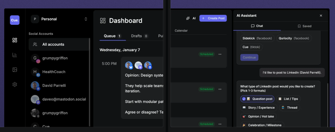 dopost is a modern social-media scheduling and publishing platform that helps creators, freelancers, and agencies manage all their content from one place. It supports direct posting to Instagram, TikTok, LinkedIn, Facebook, X/Twitter, YouTube Shorts, Pinterest, Threads, Mastodon, and Bluesky, with a unified calendar, AI content generation tools, a built-in cloud media library, and client workspaces with roles and approvals. Dopost streamlines workflows for anyone managing multiple brands or projects, offering fast performance, reliable publishing, and simple, transparent pricing.