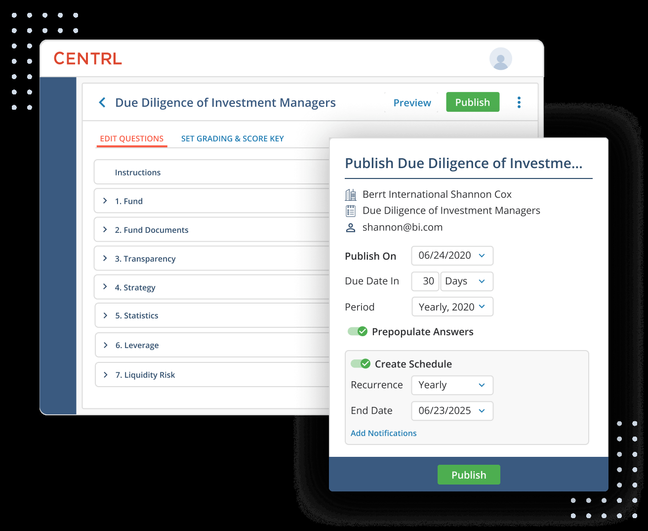 Asset owners across pension plans, endowments foundations, insurance companies and sovereign wealth funds – centralize your external manager data needs across the investment office on a single digital platform – from manager research, operational due diligence, ESG, compliance, audit confirms, to event-driven requests. Whether you are an emerging manager or an established fund, manage standard DDQs, investment databases, and investor DDQs on a centralized platform. Collaborate across investor relations, RFP, marketing, compliance, and product teams to minimize errors and deliver excellence. Whether you are an OCIO, investment consultant, wealth platform, or a fund of funds – build a defensible diligence framework across a large portfolio of fund products, and efficiently deliver differentiated investment alternatives to your clients at scale.