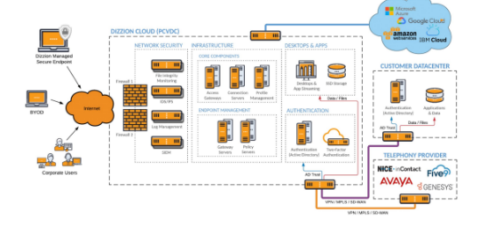 Dizzion turnkey Managed Desktop as a Service (DaaS) delivers the performance, protection and AnyCloud global delivery you need to make work from home – or work from anywhere – business as usual. Complete cloud desktop protection: managed desktop compliance, layered enterprise security and platform resilience. End-User Cloud Platform: AnyCloud global delivery, infrastructure flexibility, seamless integration, COSMOS orchestration & analytics. Turnkey Managed Desktop as a Service: get more services and the white-glove treatment from the best in the business. Our team is your team. Quickly add new, high-performing agents who can serve your clients from their home office or anywhere in the world. Dizzion Managed Desktop as a Service was built with contact centers in mind: the performance to optimize contact center software like Five9 and the protection to make sure even the most regulated of environments stays business as usual.