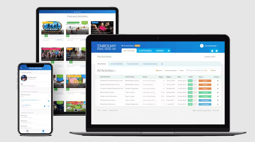 Enrolmy Virtual enables providers to schedule, market and run online activities while at the same time making it effortless for parents to find, book and pay. Enrolmy gives you the tools to quickly and easily manage OSCAR subsidies, and automatically collect and export data for super-fast MSD audit completion. Enrolmy provides you with email templates and bulk sending options that make it quick and easy to get important information where it needs to go. Give parents the ability to sign their child in and out of your programme via our on-site kiosk. This automatically updates the online attendance reconciliation form with accurate, time-stamped data from which you can generate reliable reports. Throw away your paper-based enrolment forms and provide parents with a customisable portal that makes it super easy for them to book online.