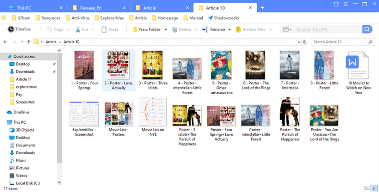 The chrome-styled tabbing feature enables you to open multiple files at the same window. It’s easy to switch from one to another. As for your favorites, you may add bookmarks with a drag-and-drop. In this way, you’ll get a better overview and always focus on the key part. If you want to track the file you managed at a certain moment, go and check Timeline. Here, you can find your browsing history classified into four groups -- Today, Yesterday, Latest Week, Latest Month. Then, the parent path is soon accessible. Moreover, for unwanted history, clearing them all or selectively is up to you. In ExplorerMax, you never bother to suffer from a slow search. As long as you enter the keyword in the search box and set the target file type, you can get grouped results in a second. When you have requests for fluent interactions between two tabs, dual-pane is a great solution to display an overview and save your time from frequent tab-switching.
