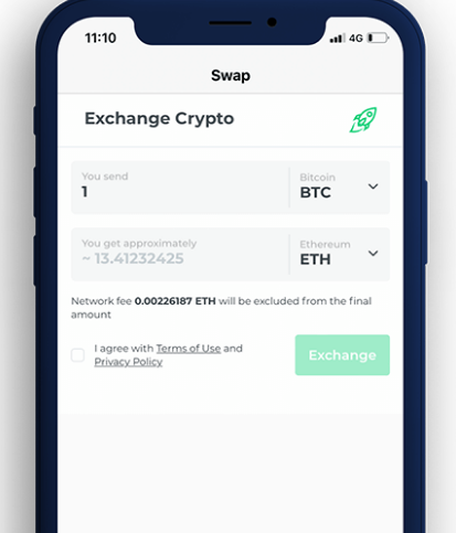 - Exchange cryptocurrency and fiat with real-time execution prices and low fees