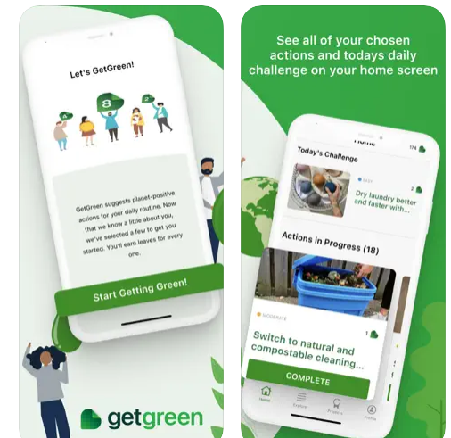 Start actively reducing your carbon footprint today by completing earth-friendly, sustainable actions with GetGreen, the mobile app that helps you make an impact on climate change through your everyday routines. Many of us want to lower our carbon footprint but aren't sure where to start. GetGreen is here to help you adopt planet-friendly, everyday habits that align with your daily life. Changing old habits can be difficult, so our mobile app will learn about your lifestyle to suggest eco-friendly actions to take and new habits to adopt so you can help fight the climate crisis. Helpful notifications keep you on track until the new, sustainable habits become your new normal. Easy and accessible for new users. Gamified behavior modification incentives. Impact and earned credits (green leaves) for every action. Location-based recommendations with real-time notifications. Personalized, interest-based actions. Sustainable product suggestions. Browse by category, popular, or recommended.