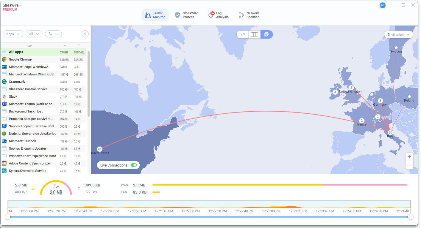 Instantly see who or what your PC is talking to on GlassWire's network monitoring graph, plus see what your PC may have connected to in the past.