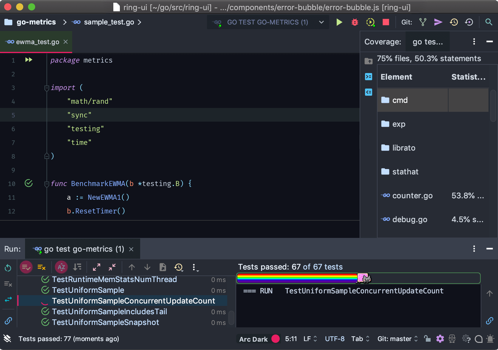 On-the-fly error detection and suggestions for fixes, quick and safe refactorings with one-step undo, intelligent code completion, dead code detection, and documentation hints help all Go developers, from newbies to experienced professionals, to create fast, efficient, and reliable code. Exploring and understanding team, legacy, or foreign projects takes a lot of time and effort. GoLand code navigation helps you get around with instant switching to shadowed methods, implementations, usages, declarations, or interfaces implemented by types. Jump between types, files or any other symbols, or find their usages and examine them with convenient grouping by usage type. Powerful built-in tools help to run and debug your applications. You can write and debug tests without any additional plugins or configuration effort, and test your applications right in the IDE. A built-in Code Coverage tool will make sure that your tests don’t miss anything important.