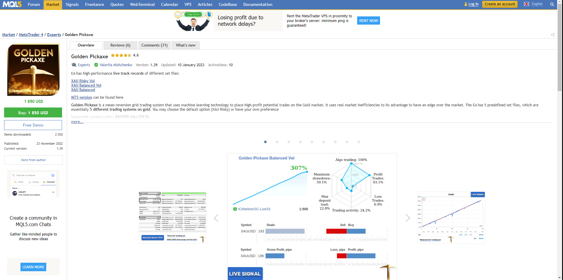 Golden Pickaxe can be tried for free for 14 days on ValeryTrading website